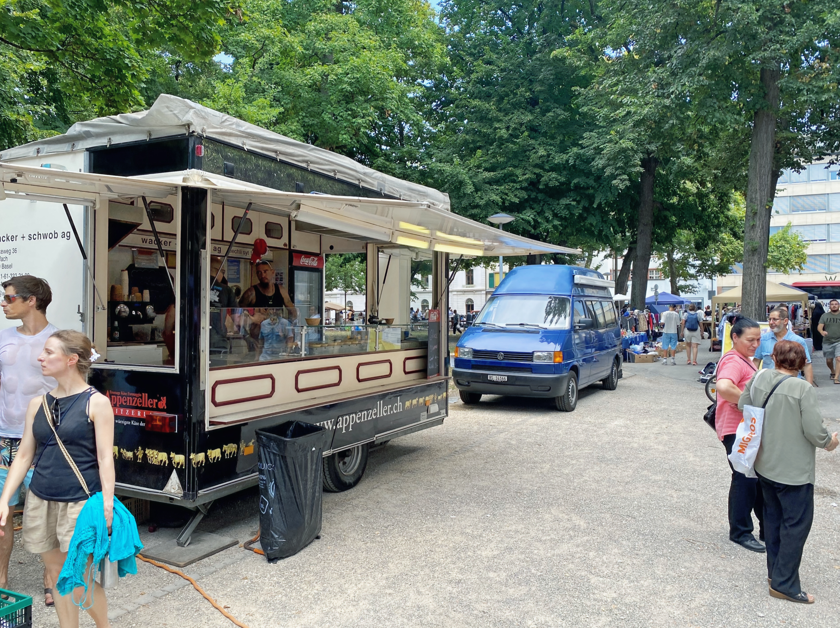 La présence de stands de nourriture et de boissons enrichit l'expérience et consolide le marché aux puces comme un espace de loisirs et de socialisation qui promeut la cohésion communautaire (mySwitzerland, 2025).