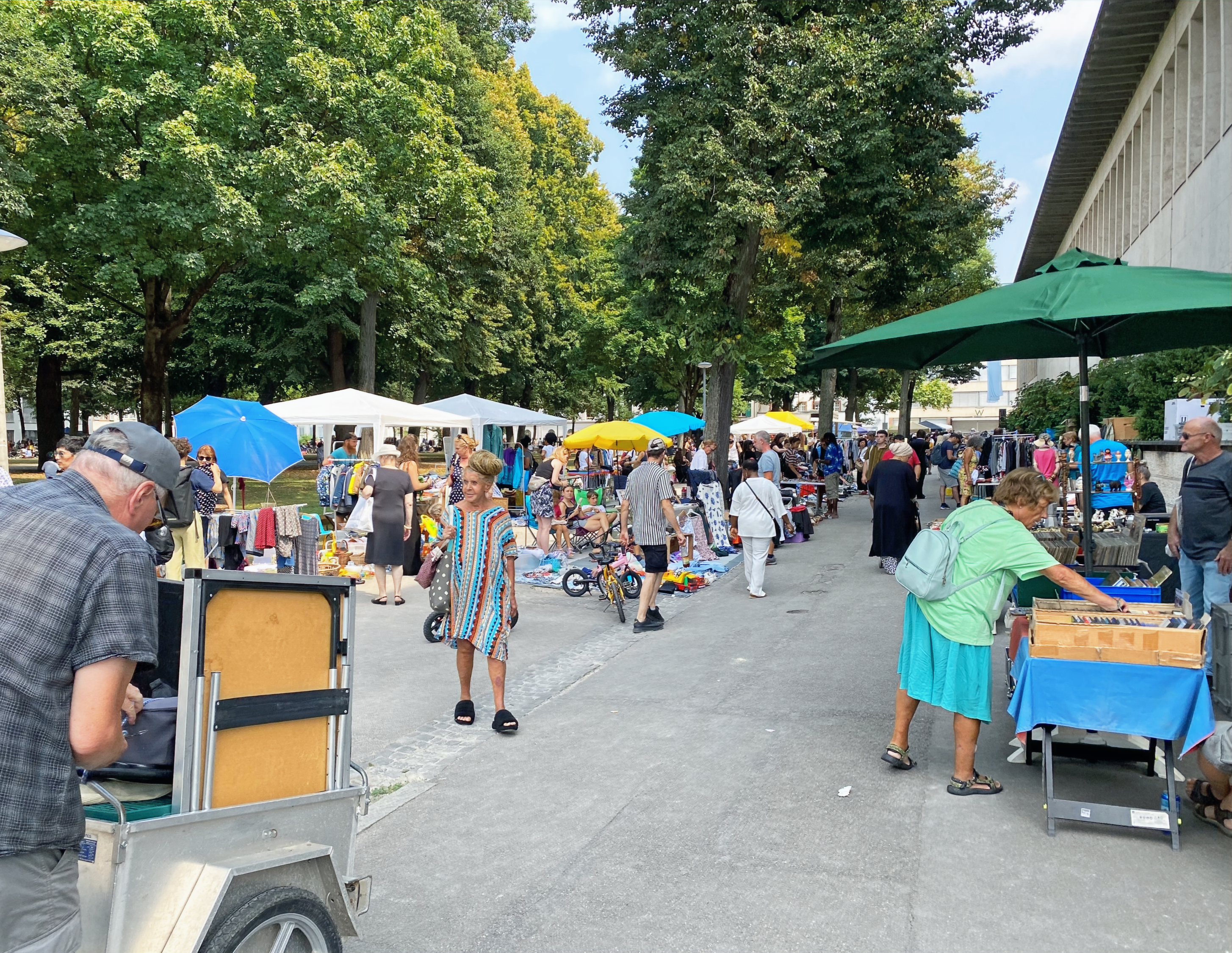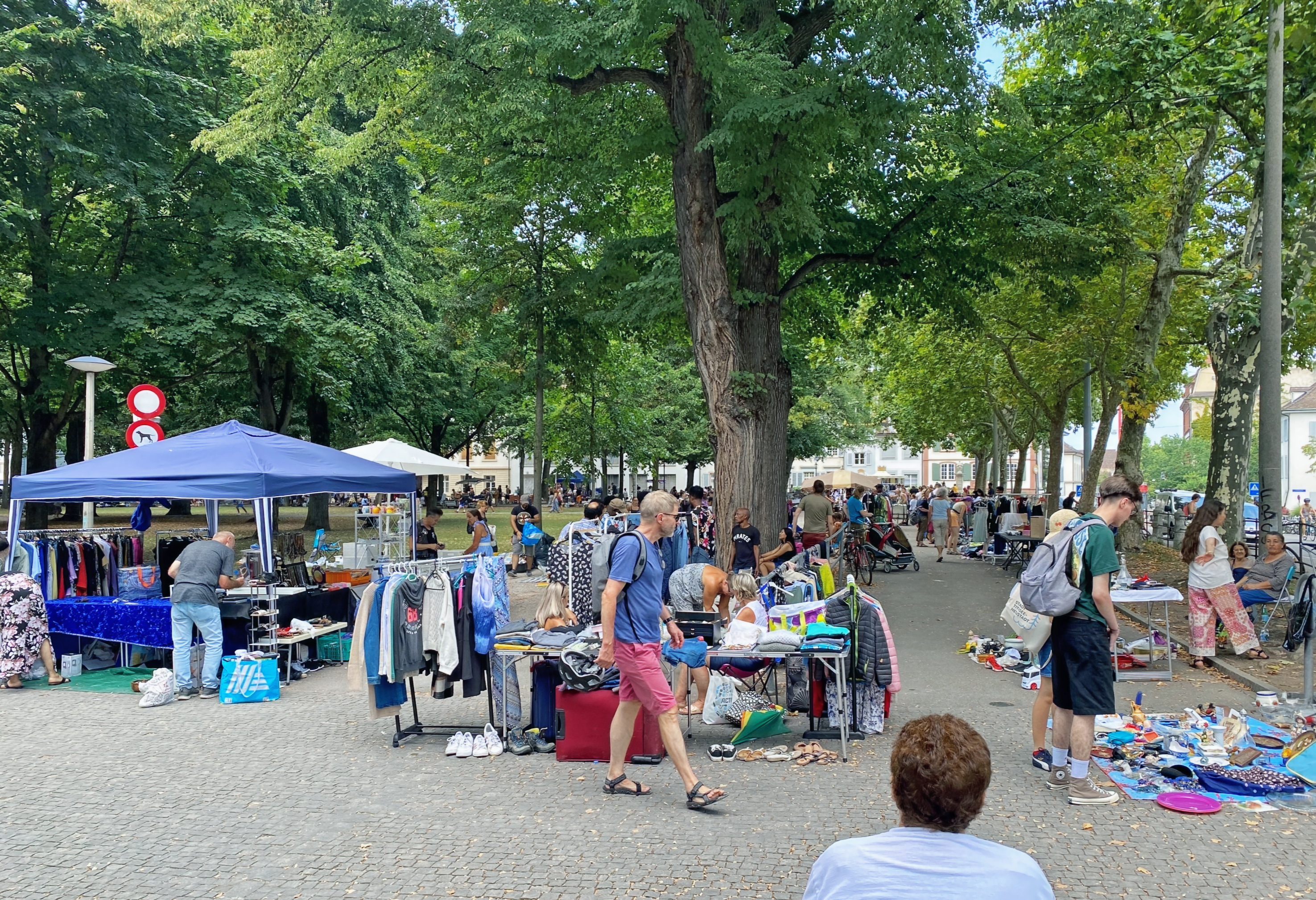 Le marché aux puces de Petersplatz à Bâle illustre comment l’activité commerciale peut s’articuler avec la durabilité.